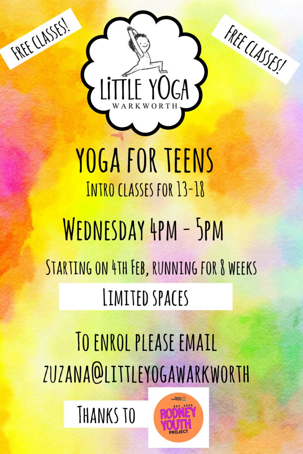 FREE teen yoga classes thanks to the Rodney Youth Small Project Fund (Rodney Local Board)